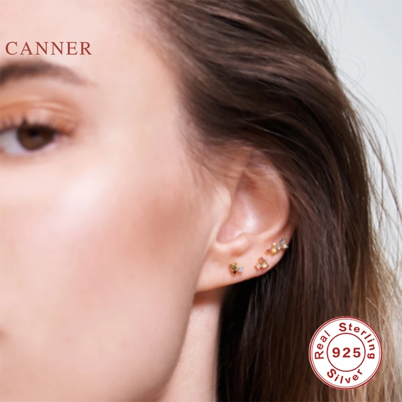 Женские серьги-гвоздики CANNER, серебряные серьги для тела с микро-...