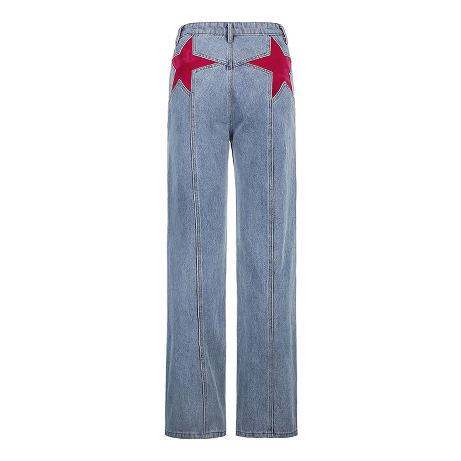 Женские винтажные джинсы со звездами в стиле пэчворк y2k, расклешенные джинсы с высокой талией, повседневные джинсы МОМ, уличная одежда, брюки 2021