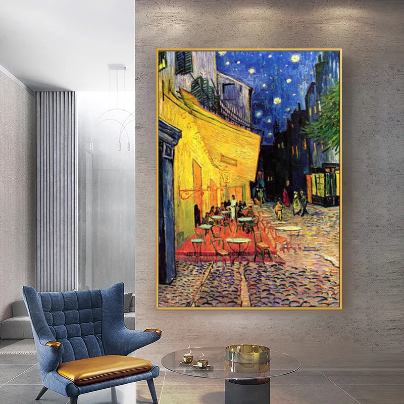 Картина Ван Гог, знаменитая картина маслом, для кафе, террасы ночью, Репродукция на холсте, плакат и принты, импрессионизм, настенное искусство, декоративная картина