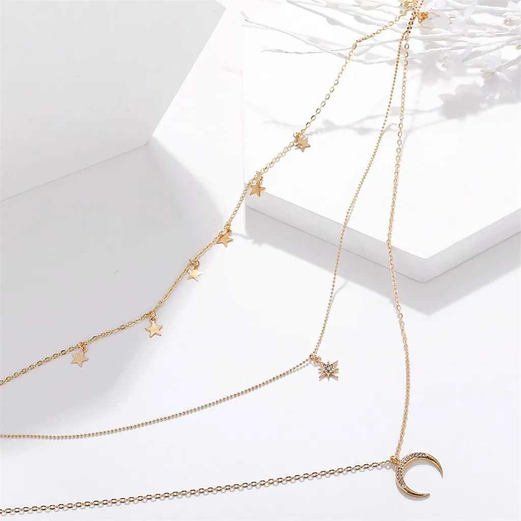 Пятиконечная подвеска цепочка для ключицы винтажное трехслойное ожерелье со звездой и полумесяцем