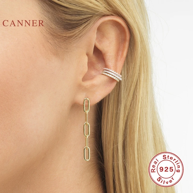 GS 925 пробы Серебряная Ушная манжета Клип цепи серьги для женщин Ц...