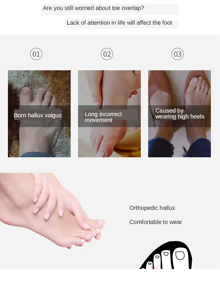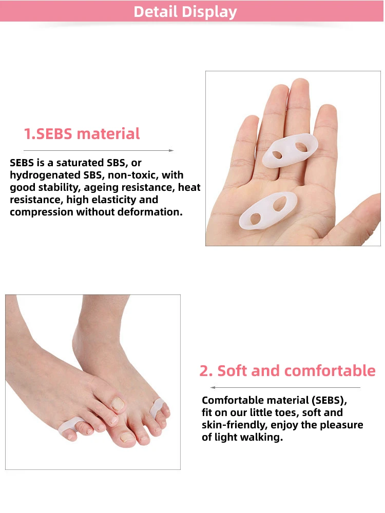 Супер мягкий гель, удобно носить с маленьким носком, отделяет перекрещивающийся острый носок, может эффективно улучшить угол деформации носка, И предотвращает обострение боли, очень подходит для тех, кто носит высокие каблуки в долгосрочной перспективе