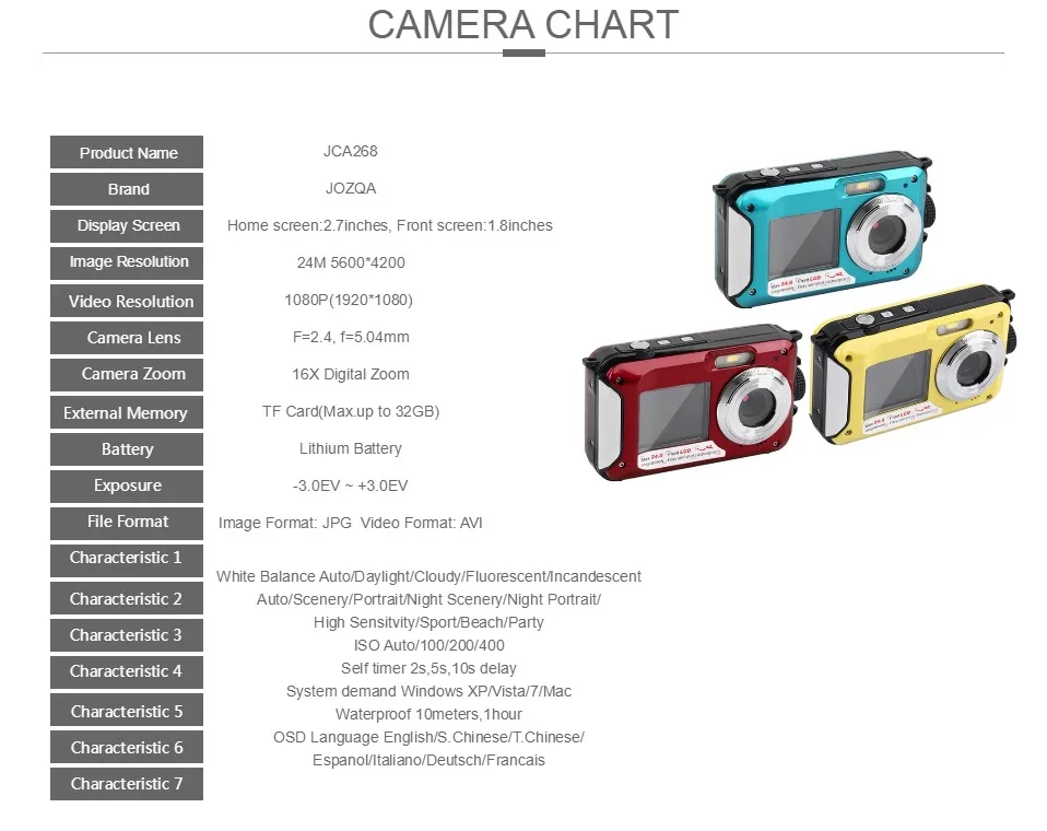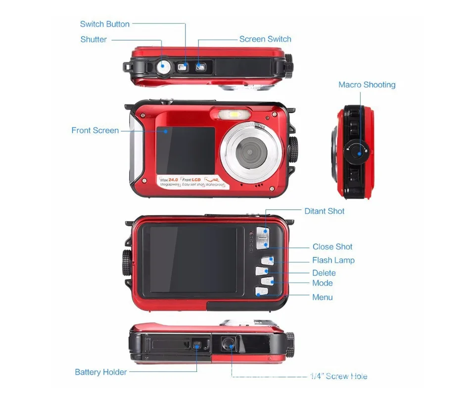 Водонепроницаемая TFT Цифровая камера 2,7 дюйма, 24 МП48 МП, 1080P, двойной экран, 16-кратный цифровой зум, видеокамера HD268, подводная камера