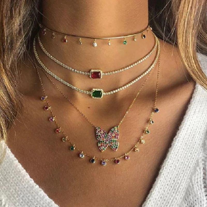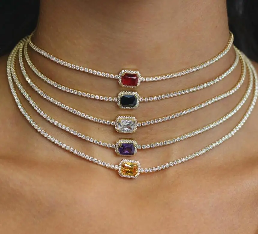 Цепочка с радужным кристаллом золотого цвета с фианитами, короткое колье-чокер для женщин и девушек, эффектное ювелирное изделие, ожерелье-колье для кеттинга