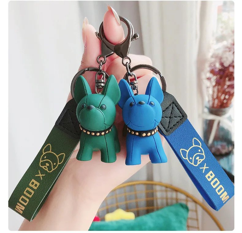 Модный брелок в стиле панк с французским бульдогом, брелки из искусственной кожи с собакой для женщин, подвеска для сумки, ювелирное изделие, безделушка, мужской брелок для автомобиля, брелок для ключей