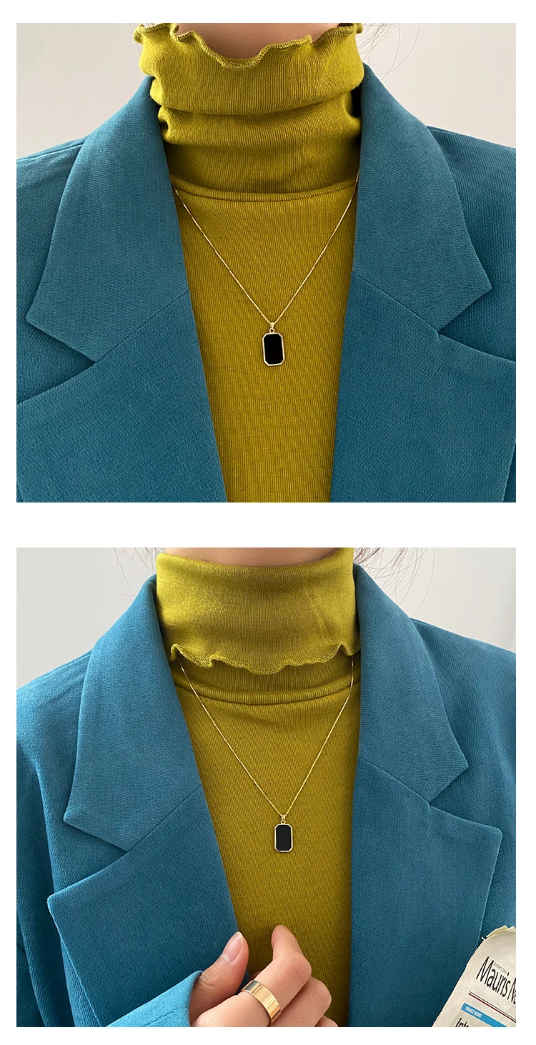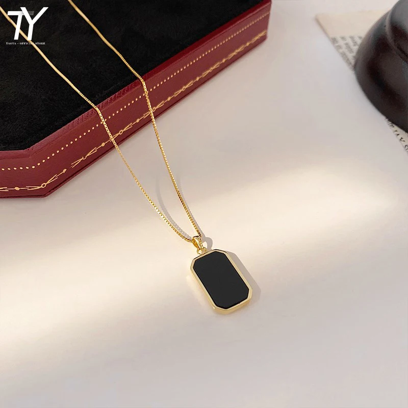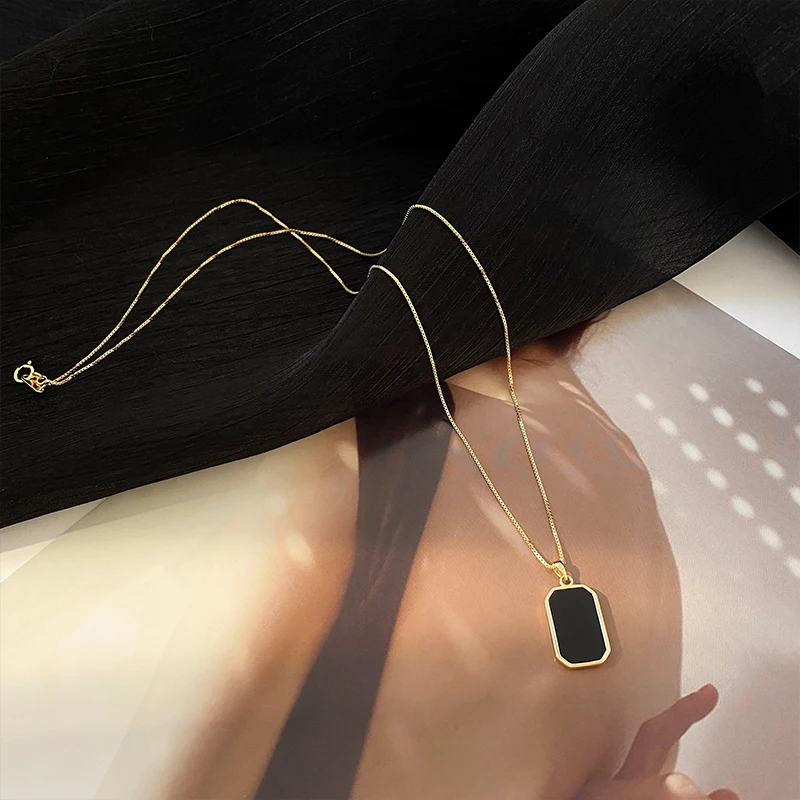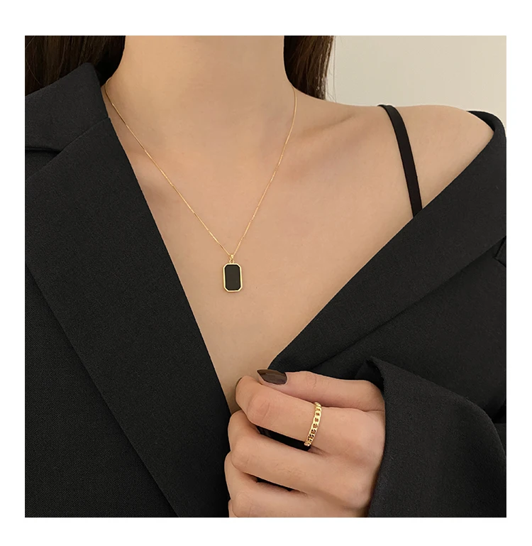 Ожерелье из титановой стали с кулоном женское, классическое черное квадратное Ювелирное Украшение в Корейском стиле, характерная цепочка до ключиц для девушек, 2021