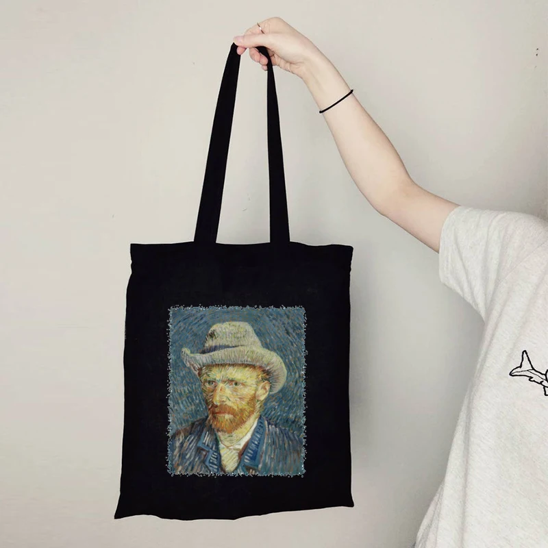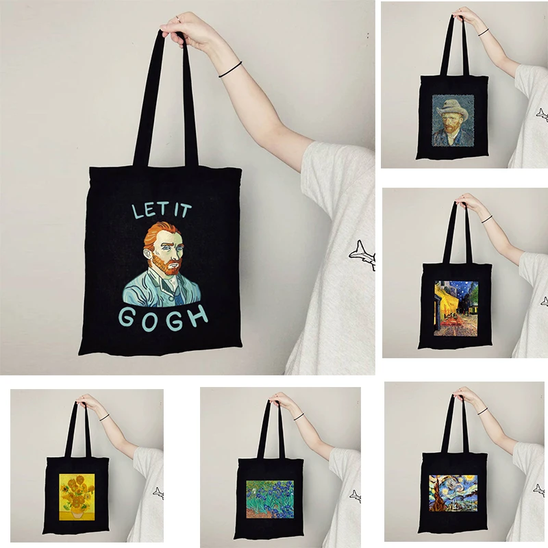 Сумка-шоппер Ван Гог, холщовая, с рисунком масляными красками, винтажная, для покупок, в стиле Харадзюку