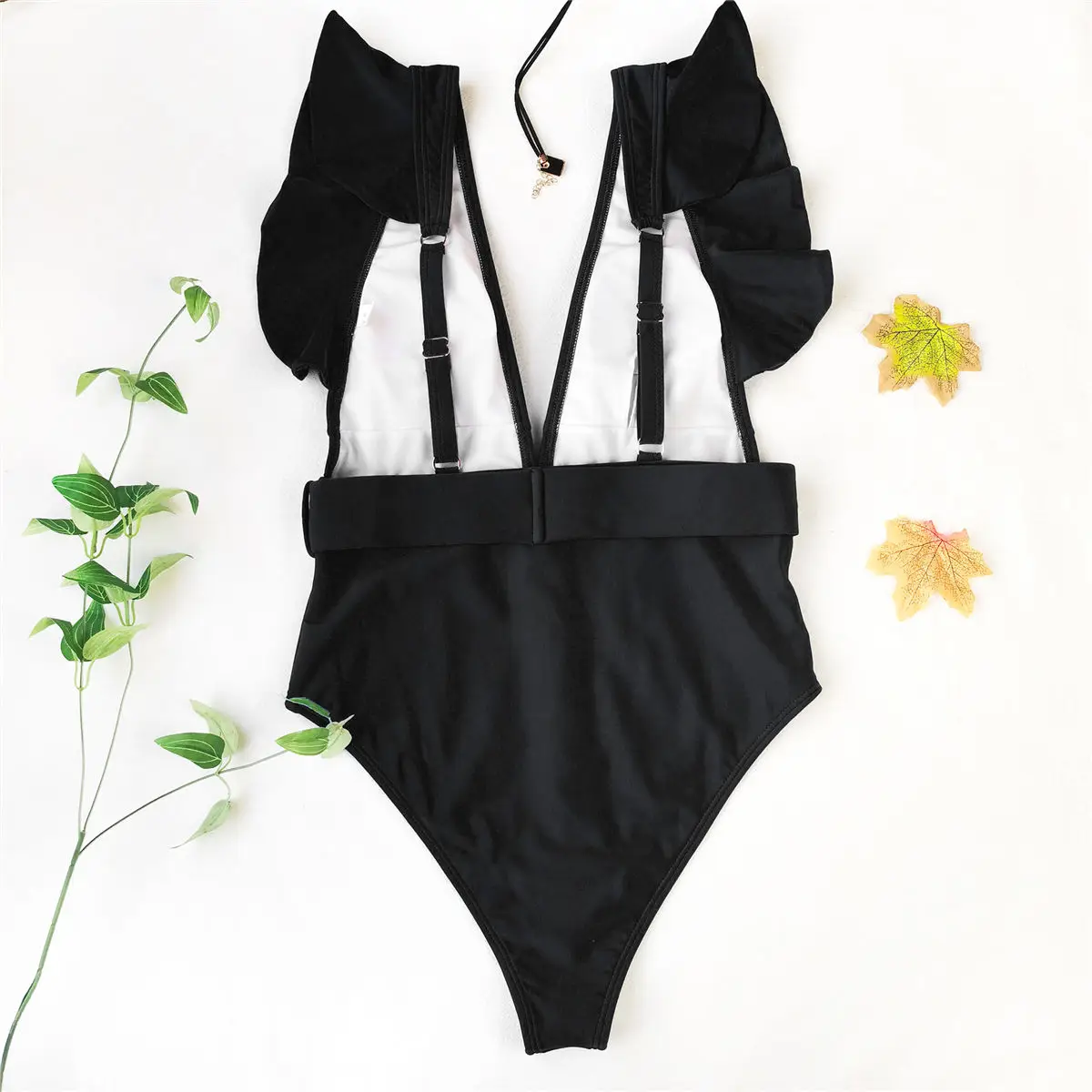 2021 сексуальный цельный купальник женский однотонный черный стринг...