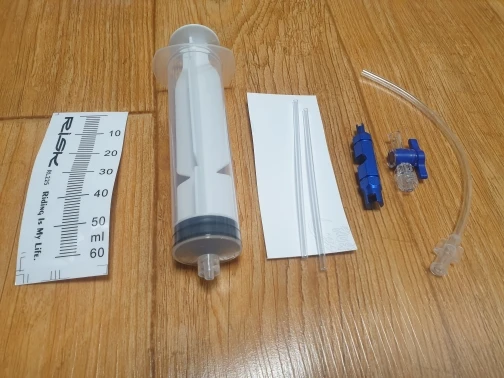 Купил этот шприц для залива масла при переборке вилок. Товар как в описании, единственное - нужно самому наклеить шкалу мл. (идёт в комплекте, 2 шт.) на шприц, с упаковки он идет без маркировки.