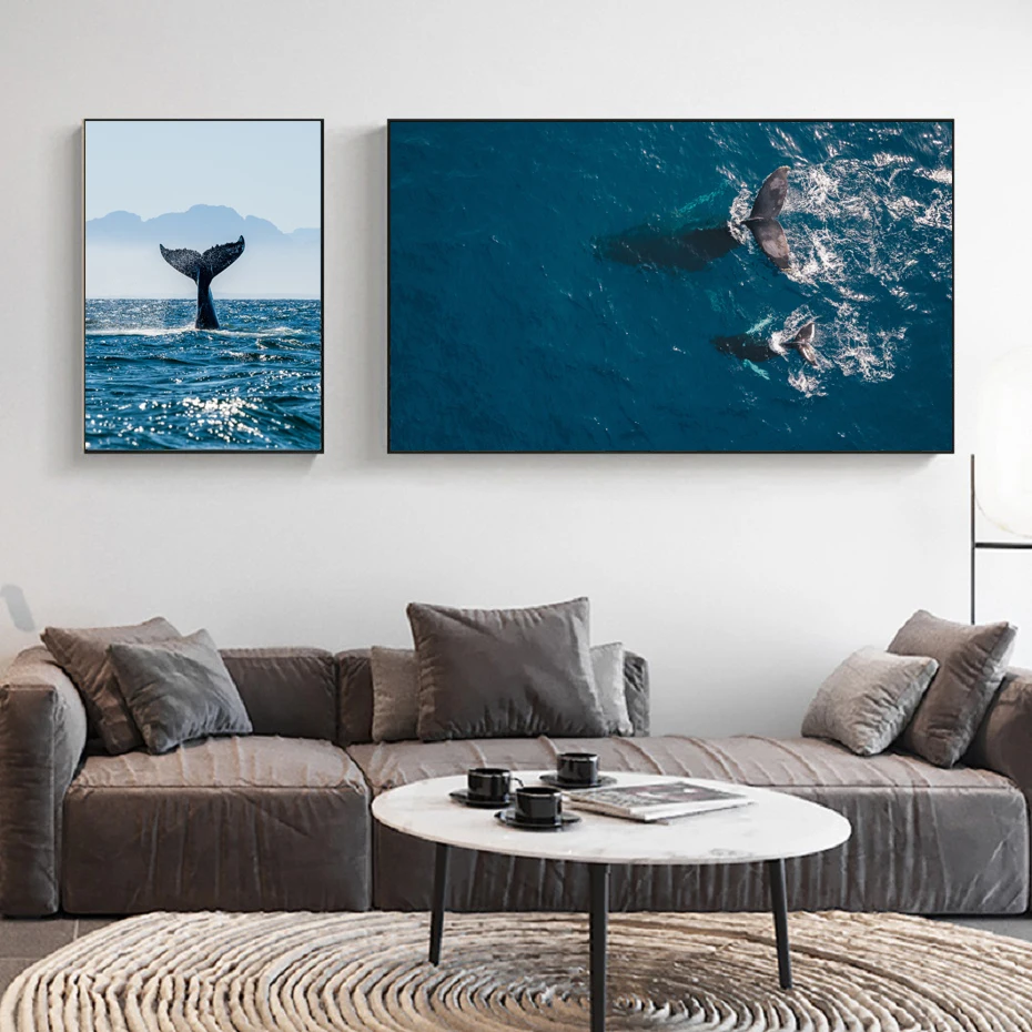 Морской Кит двойной холст картины плакат скандинавские современные настенные Художественная печать на холсте принты Спальня Гостиная украшение дома