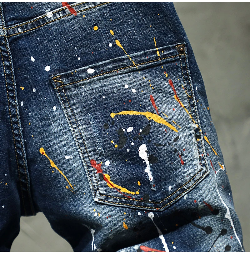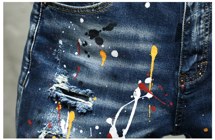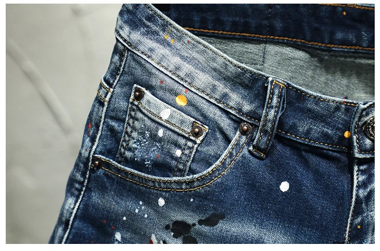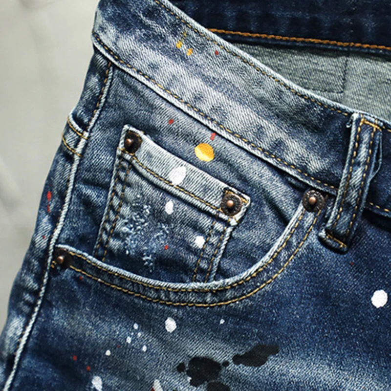 Мужские красивые джинсы с принтом для девочек, модные тонкие Стрейч...