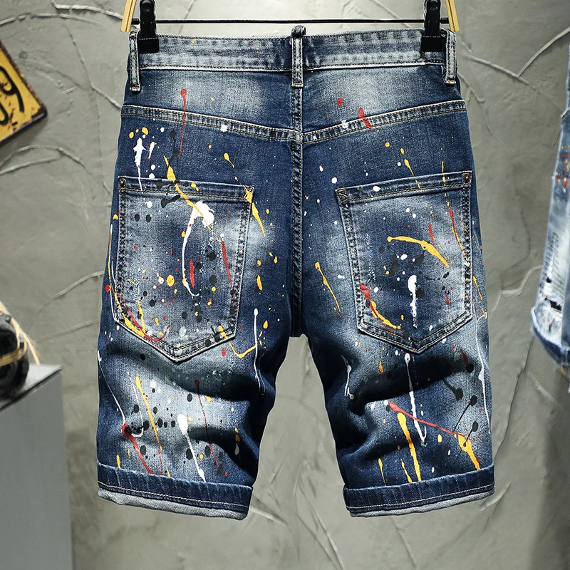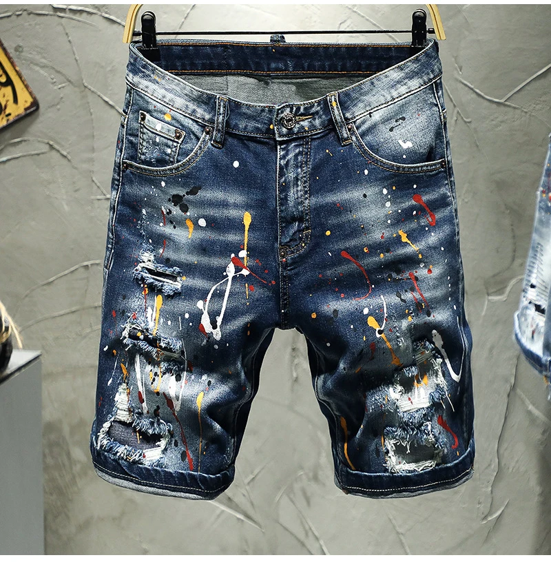 Джинсовые Бриджи мужские, рваные, летние, Стрейчевые