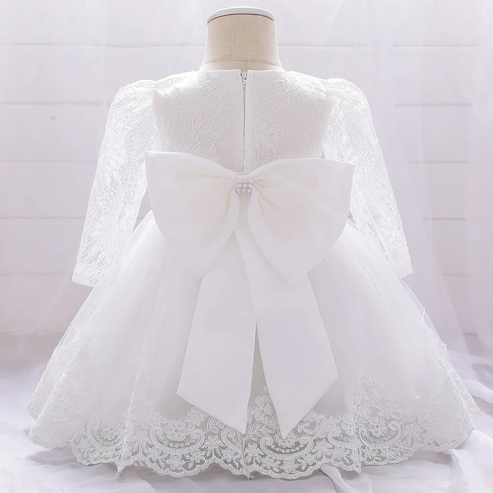 Кружевное платье для девочек, с длинным рукавом и большим бантом