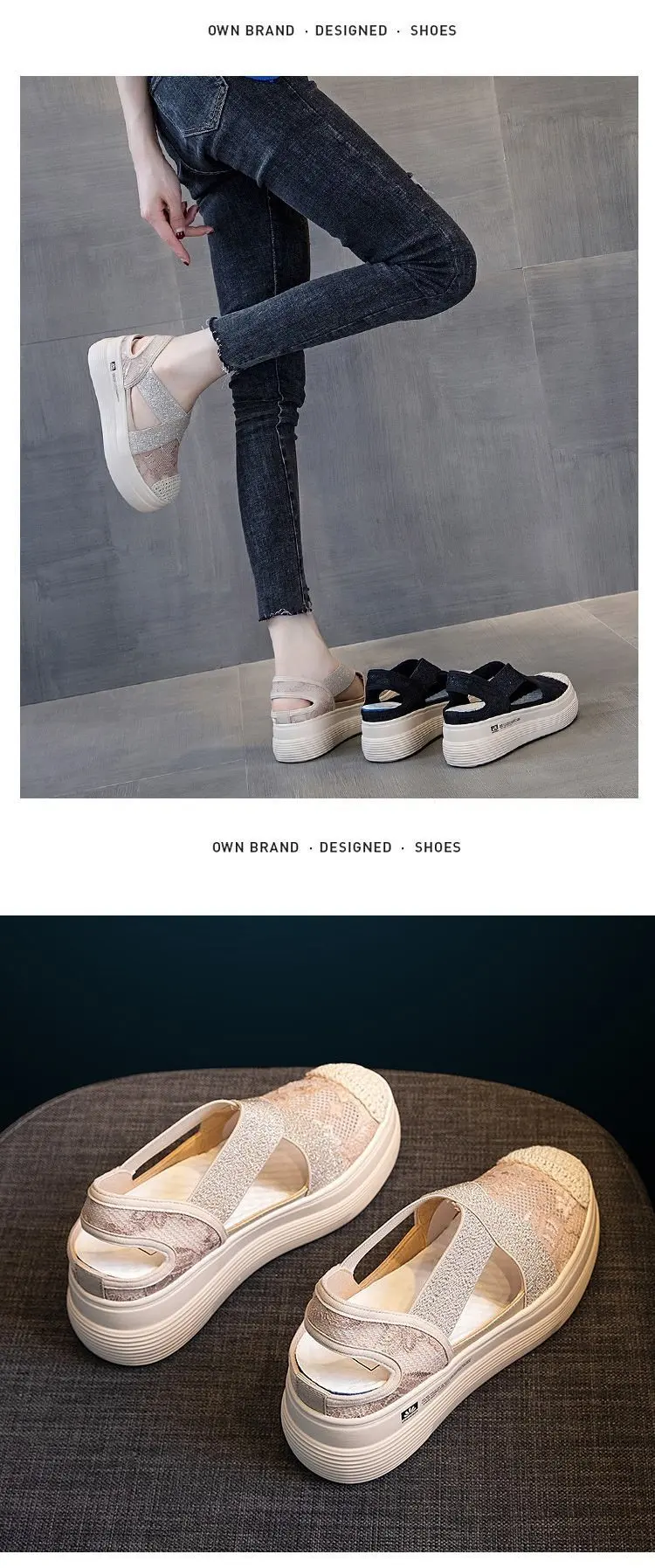 Женские весенне-летние кружевные туфли в сказочном стиле на толстой подошве; Женская обувь в рыбацком стиле; Повседневные сандалии; C724