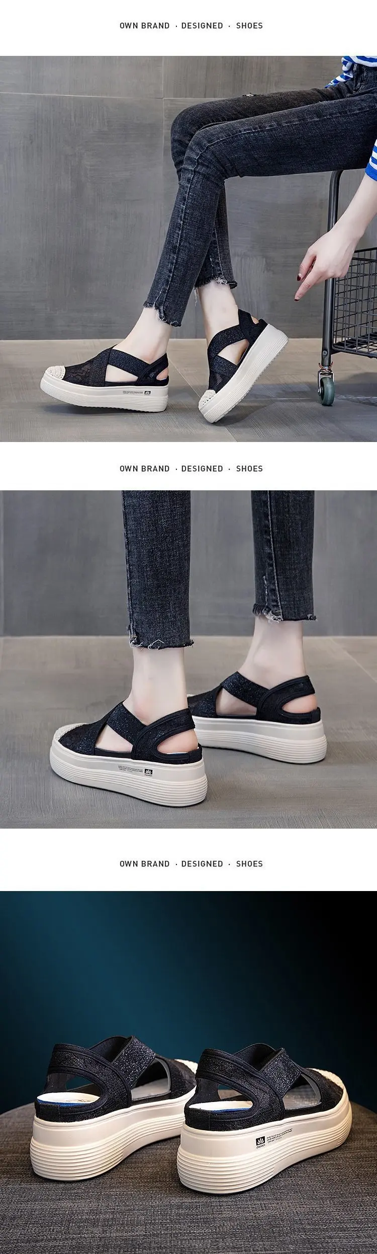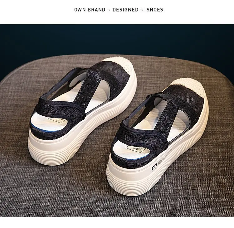 Сандалии женские на толстой подошве, дышащие босоножки в Корейском ...