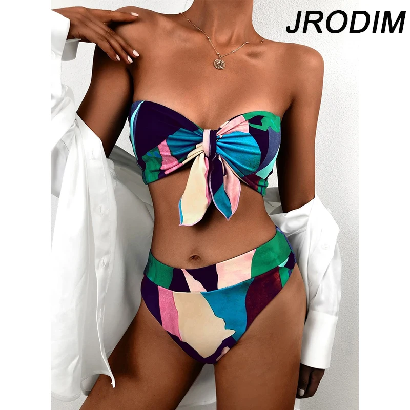 Бикини JRODIM с высокой талией и принтом, пикантный купальник-бандо, женский купальник с узлом, женский купальный костюм, Бразильская пляжная одежда, бикини 2021