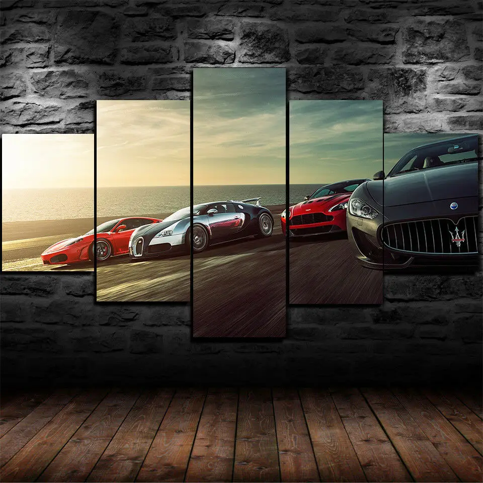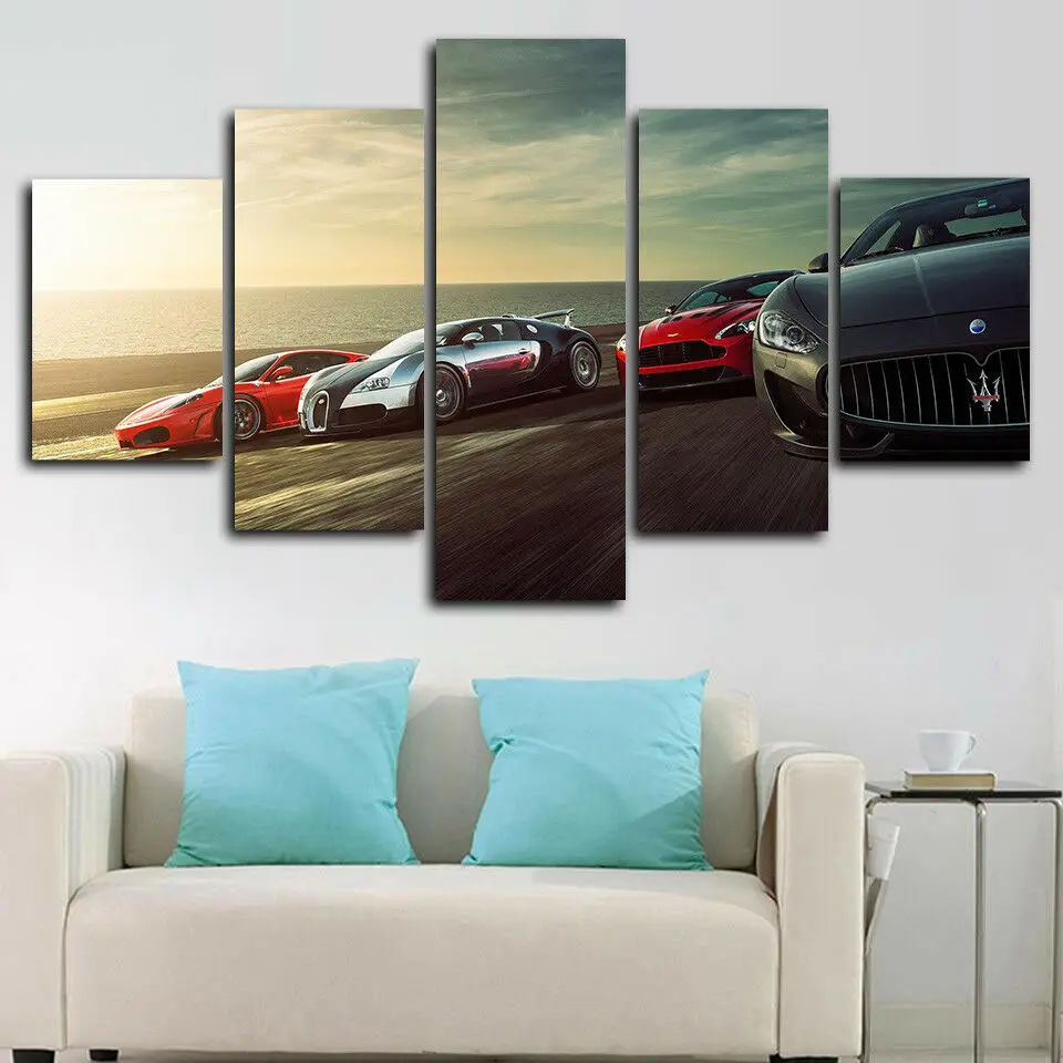 5 панелей без рамки, настенные художественные Плакаты для автомобил...