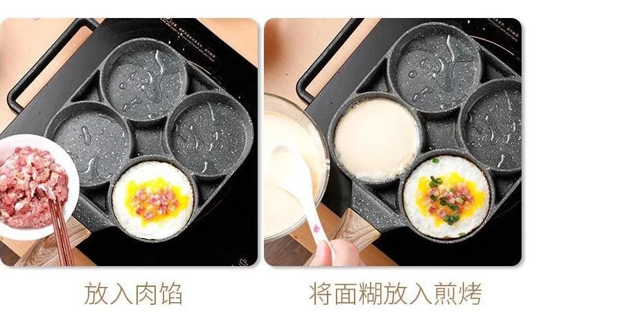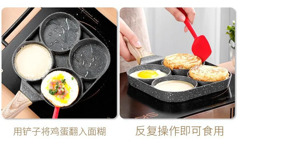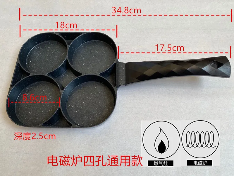 Антипригарная сковорода с четырьмя отверстиями, сковорода, утолщенная сковорода для блинчиков, стейков, приготовления яиц, ветчины, посуда для завтрака