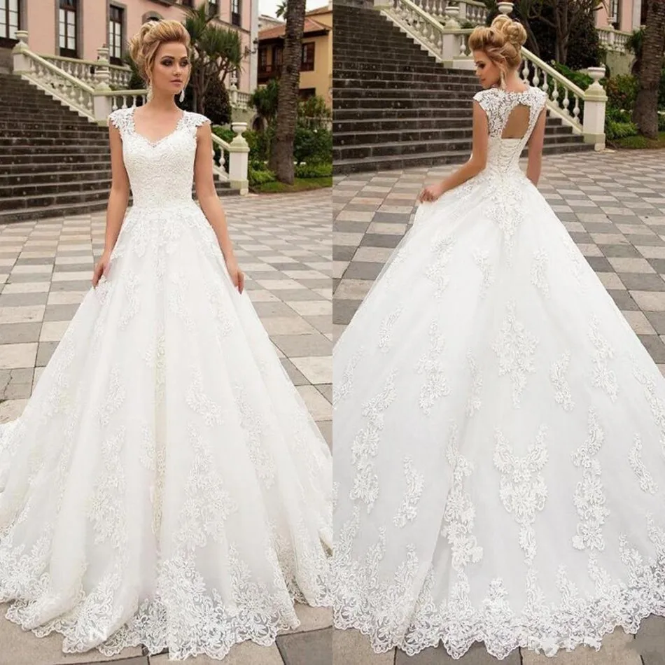 Роскошное бальное платье, белое свадебное платье с кружевной апплик...