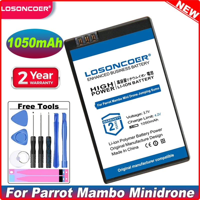 LOSONCOER 1050 мАч большой емкости дроны батарея для попугаев миндроны Mambo Jumping Sumo & Rolling Spider