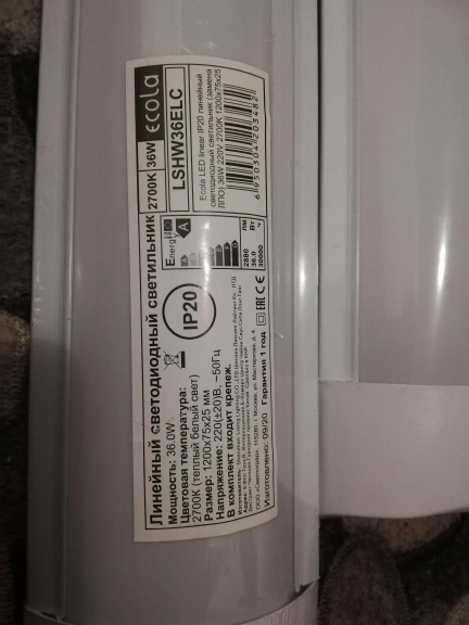 Светильник светодиодный Ecola, 36 Вт, 2880 Лм, 2700 К, IP20, 1200х75х25 мм 4022857