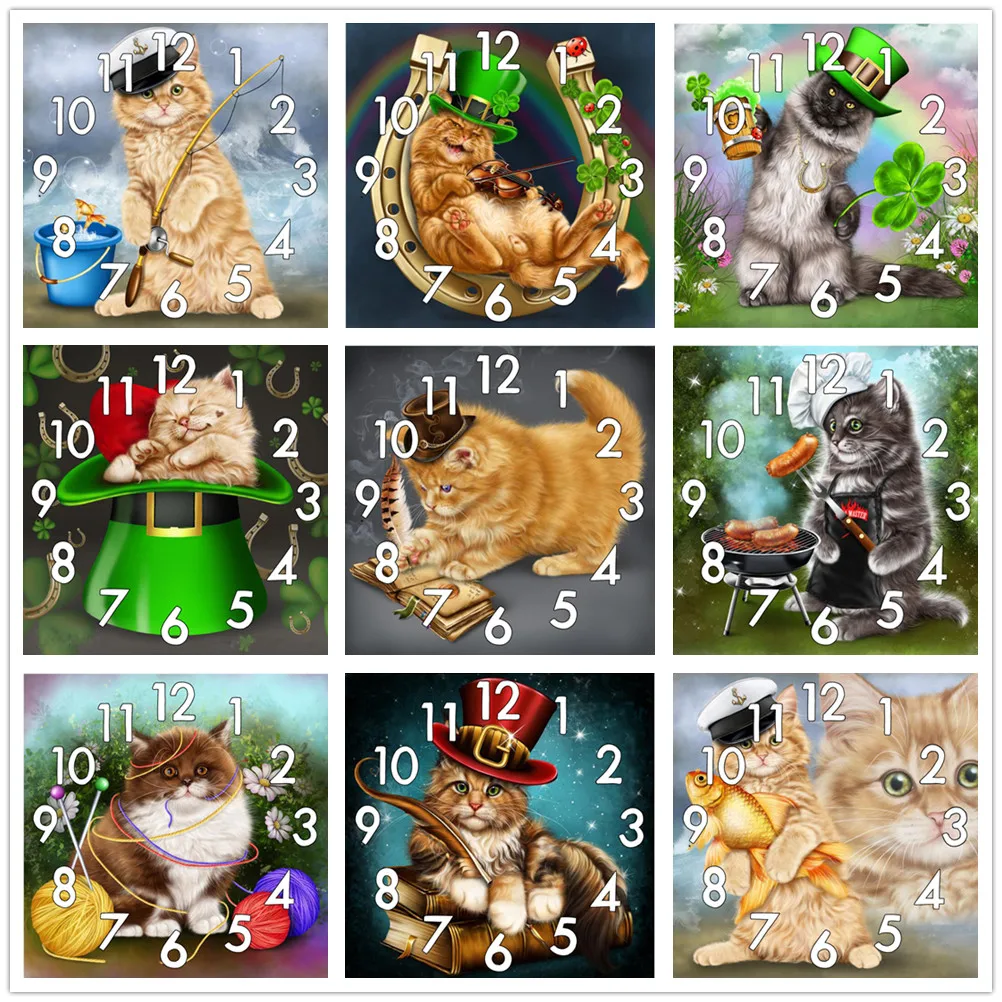 Полноформатная алмазная живопись Dpsupr, вышивка крестиком с часовым механизмом, мозаика 5D сделай сам, квадратная, круглая, мультяшная 3d-вышивка с кошкой, подарок