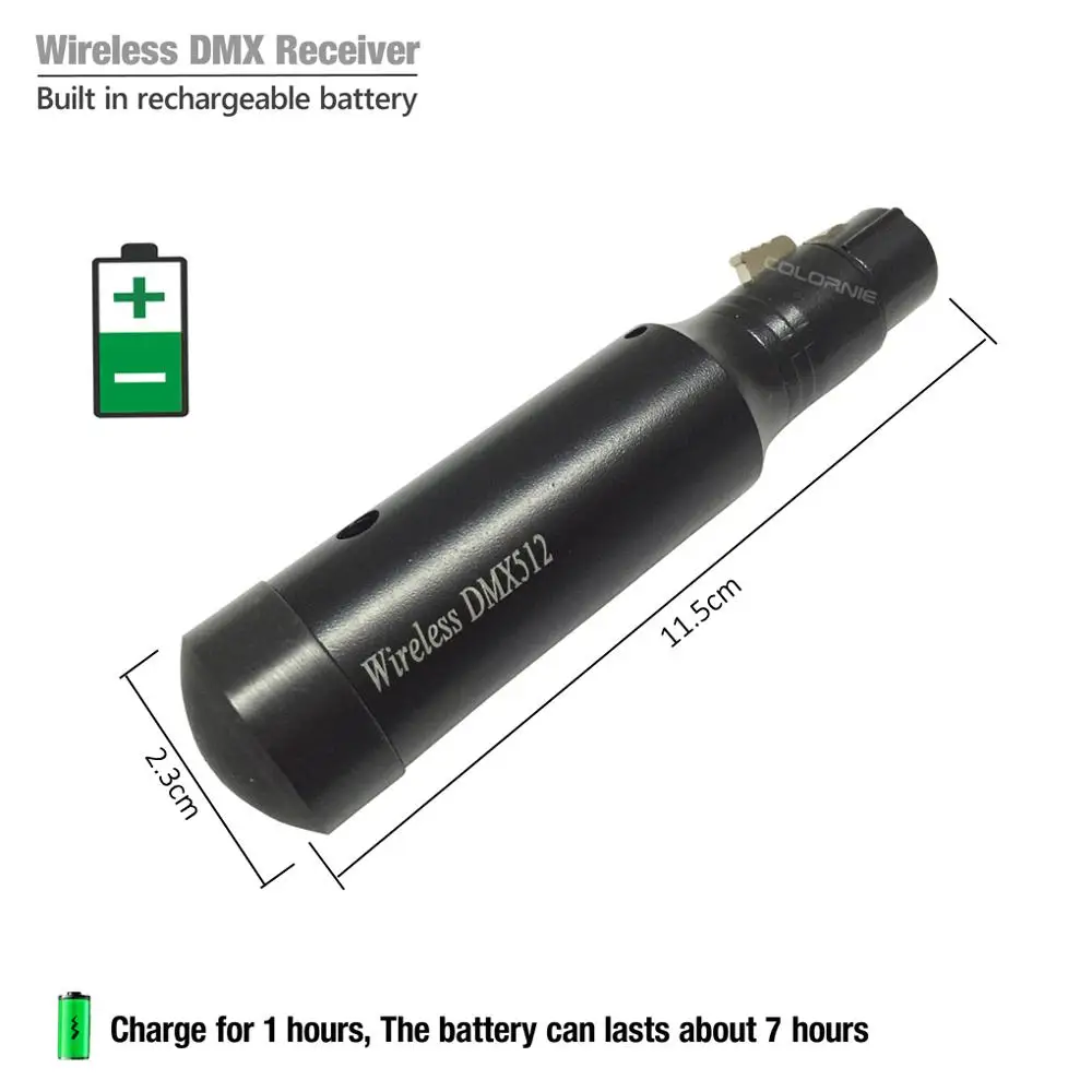 Беспроводной приемник DMX512 новейшего дизайна имеет встроенную перезаряжаемую батарею, и батарея возобновляется.