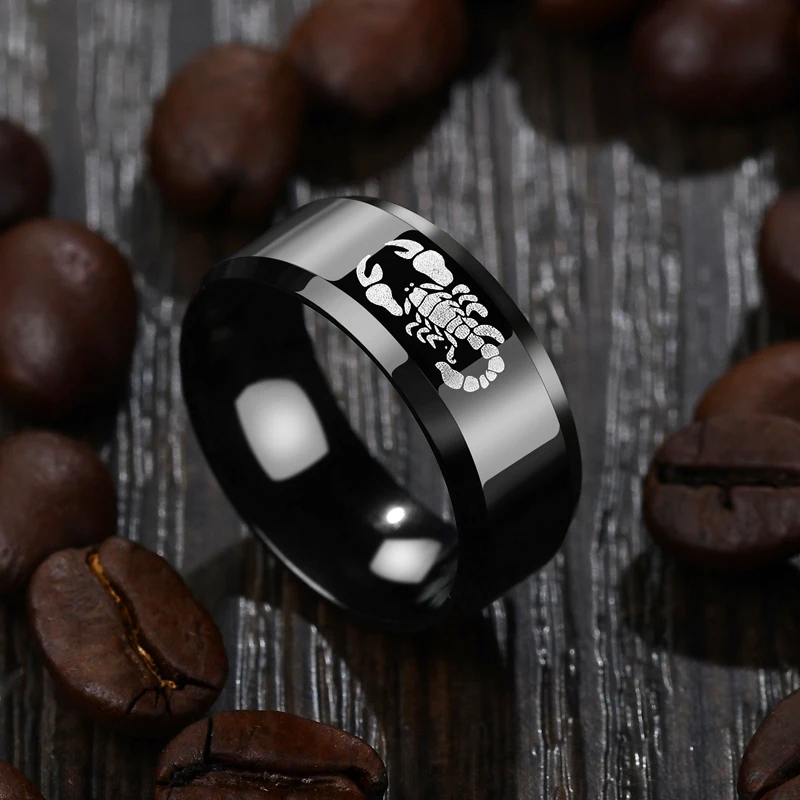 Мужское и женское кольцо с черным скорпионом, из нержавеющей стали