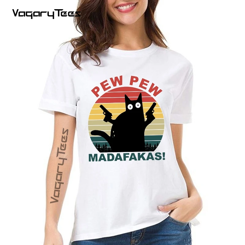 Женская футболка с рисунком кошки, забавная Футболка с принтом кота, pew madafakas, лето 2021