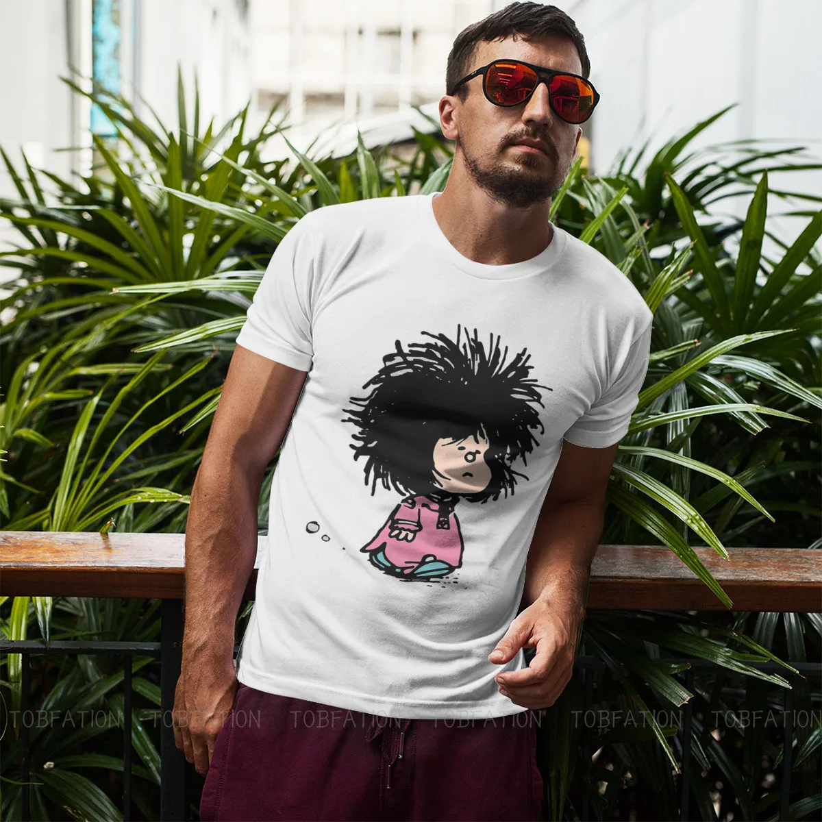 Футболка мужская, с круглым вырезом, из хлопка, Mafalda Quino Comics, с рисунком манги, для девочек, размера плюс