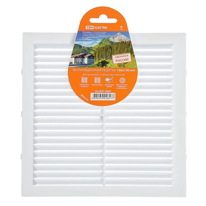 Решетка TDM, неразъемная, с москитной сеткой, 190 х190 мм, белая 4839727