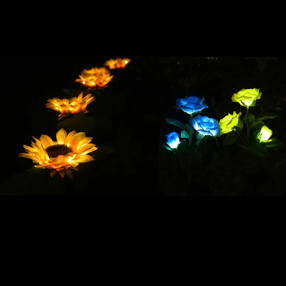 Светодиодный Водонепроницаемый цветочный светильник на солнечной батарее Роза лампа Подсолнечник светодиодный Lightning сад фестиваль декоративный свет для открытого напольного газона патио садовый фонарь