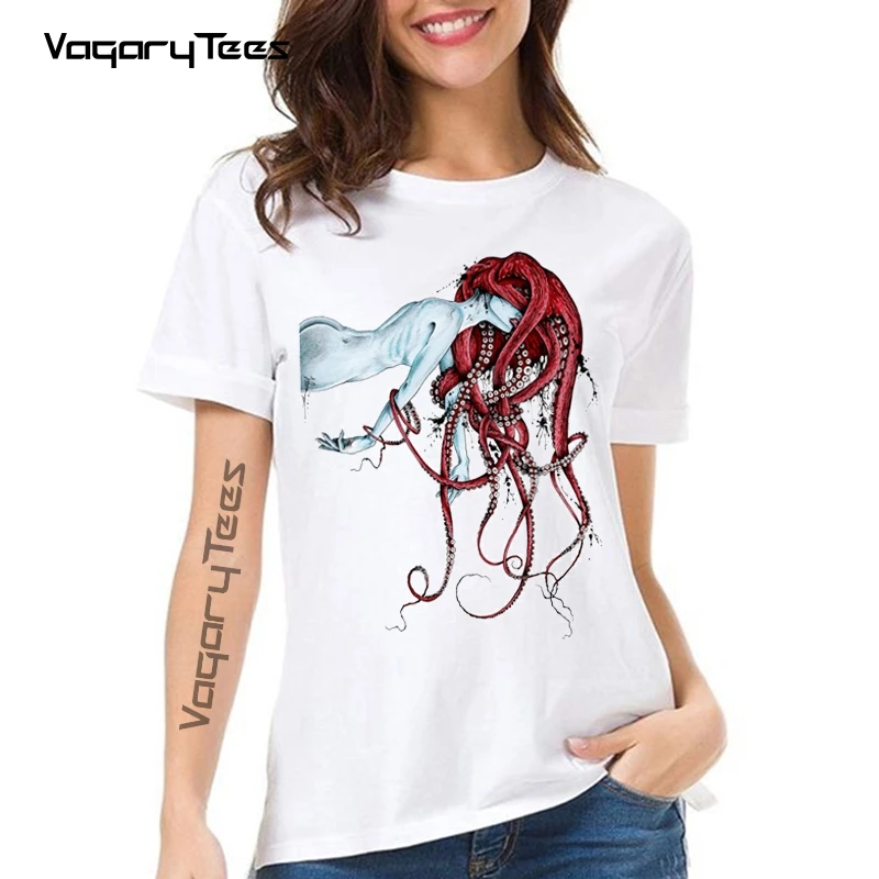 Женская футболка с коротким рукавом и принтом осьминога