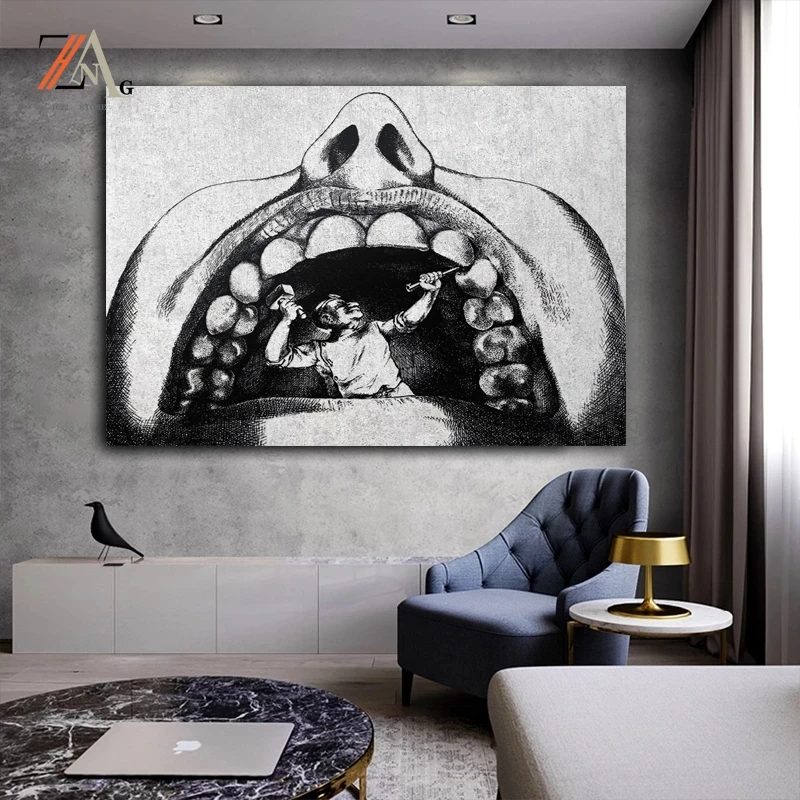 Современное Абстрактное Искусство дантист Юмор КАМЕНЬ НАСТЕННАЯ Художественная печать искусство зубы Анатомия офисное украшение медицинский холст Печать Фреска медицинская
