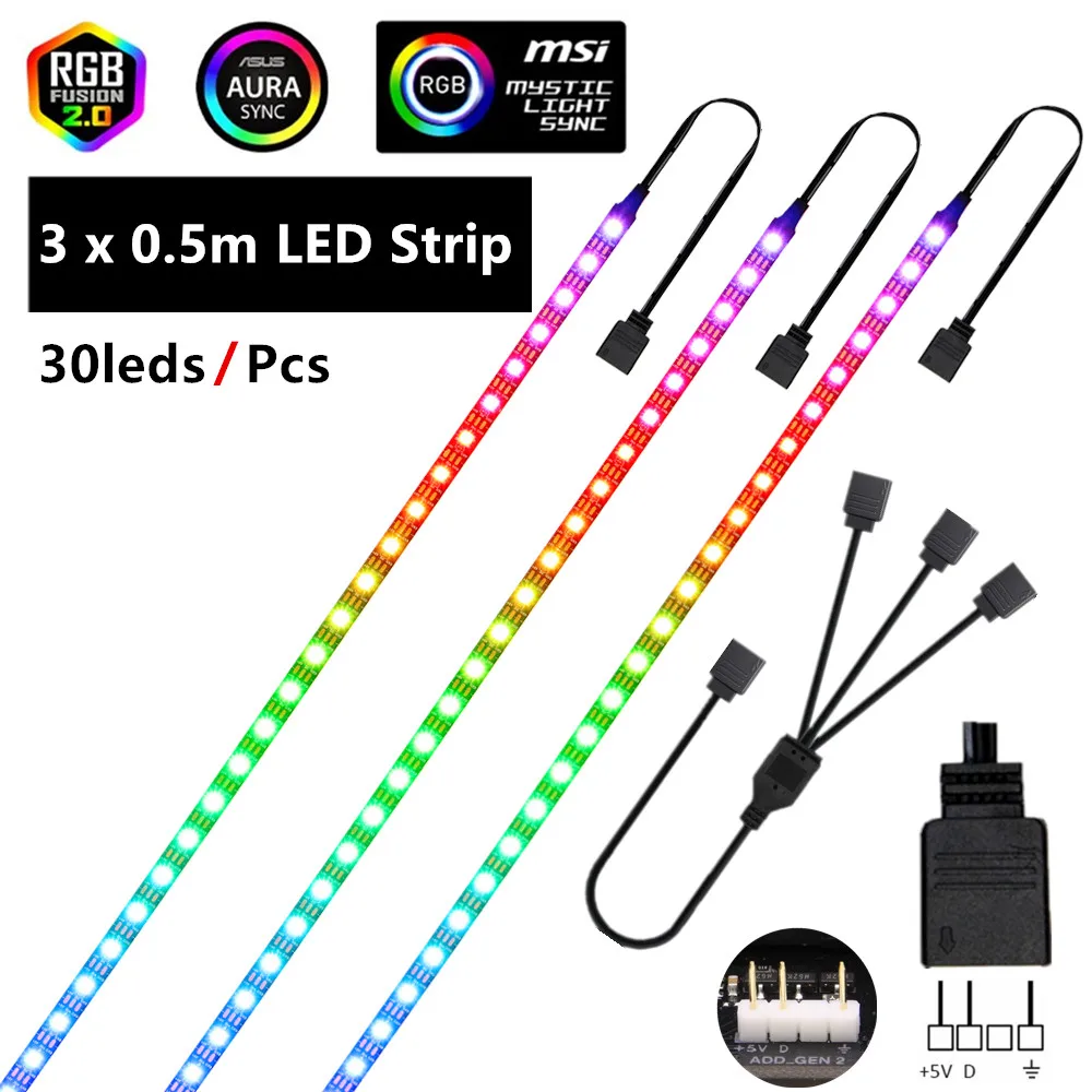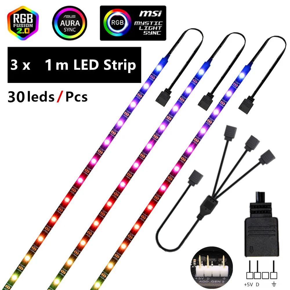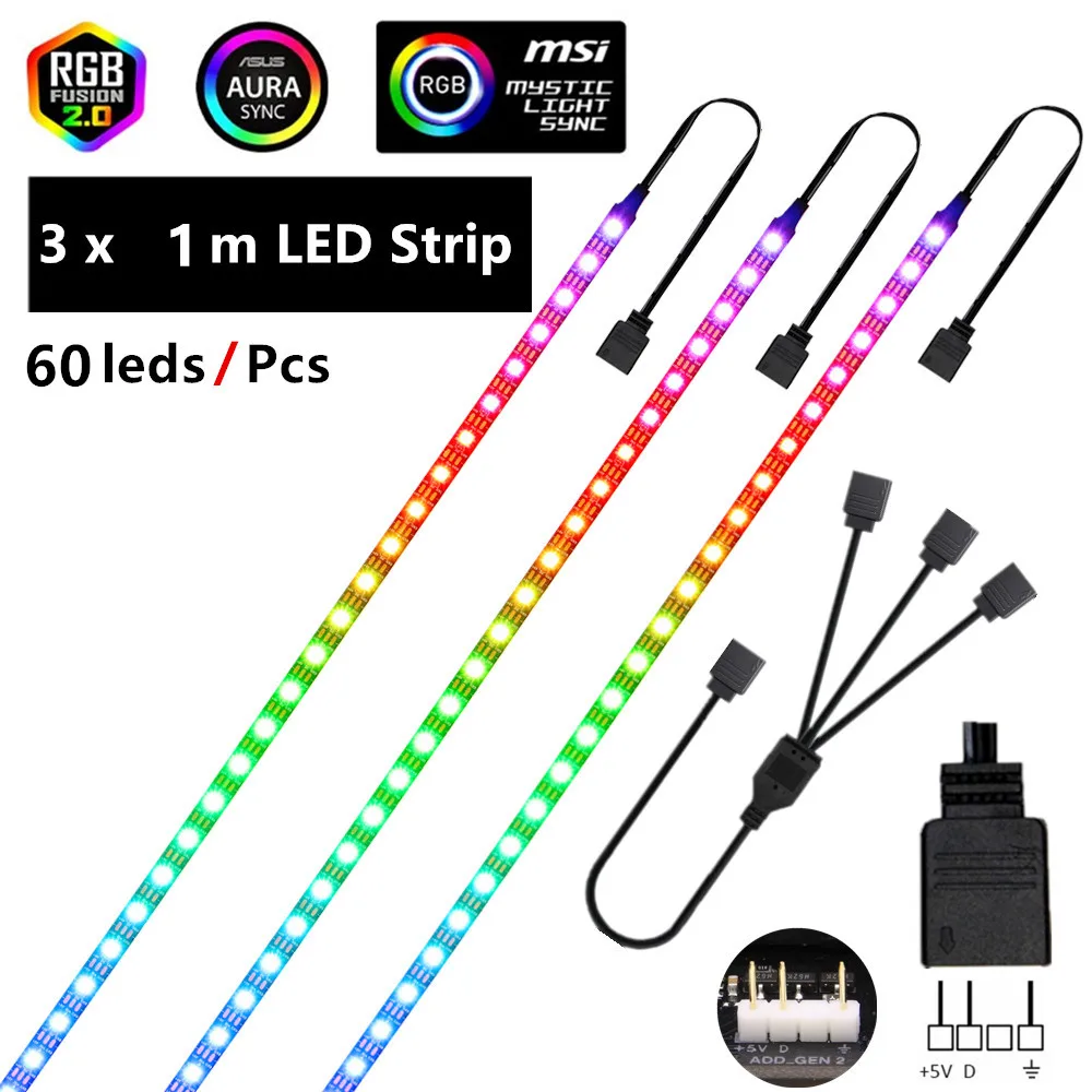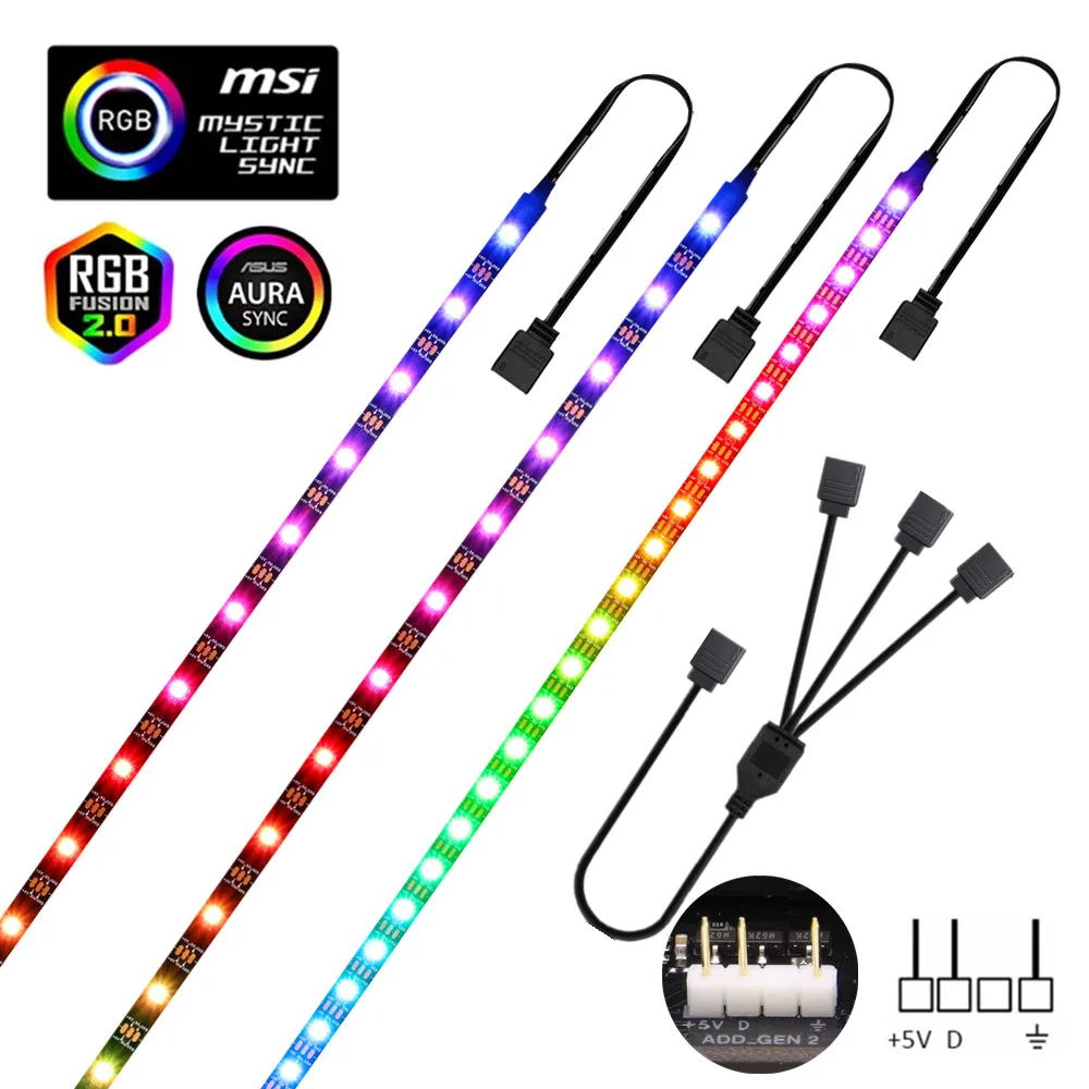 Неоновая RGB Светодиодная лента, 5 В, Адресуемая ws2812b лента, игровой шкаф для ПК, чехол, материнская плата, 3Pin Header ASUS Aura SYNC,MSI Mystic