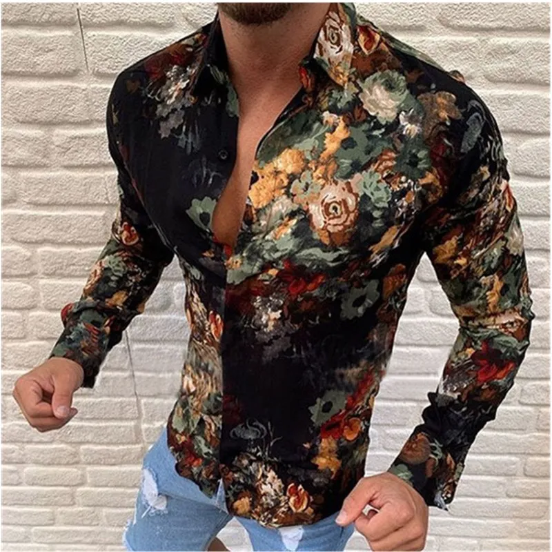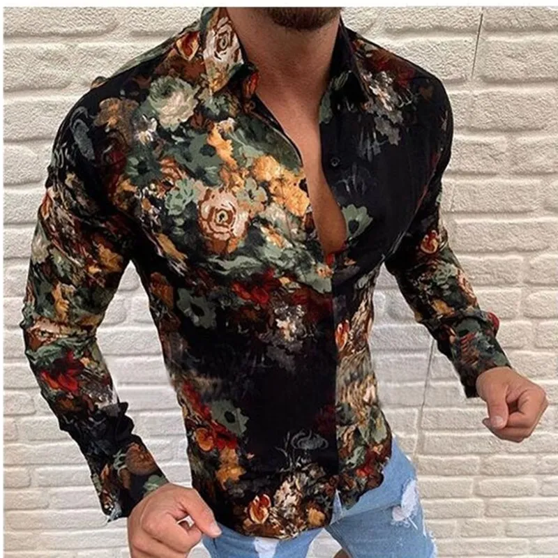 Рубашка мужская однобортная с принтом, Свободный Топ, модная повсед...
