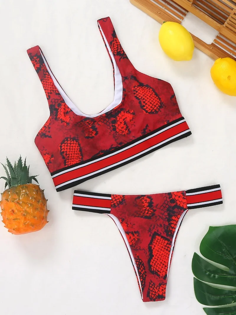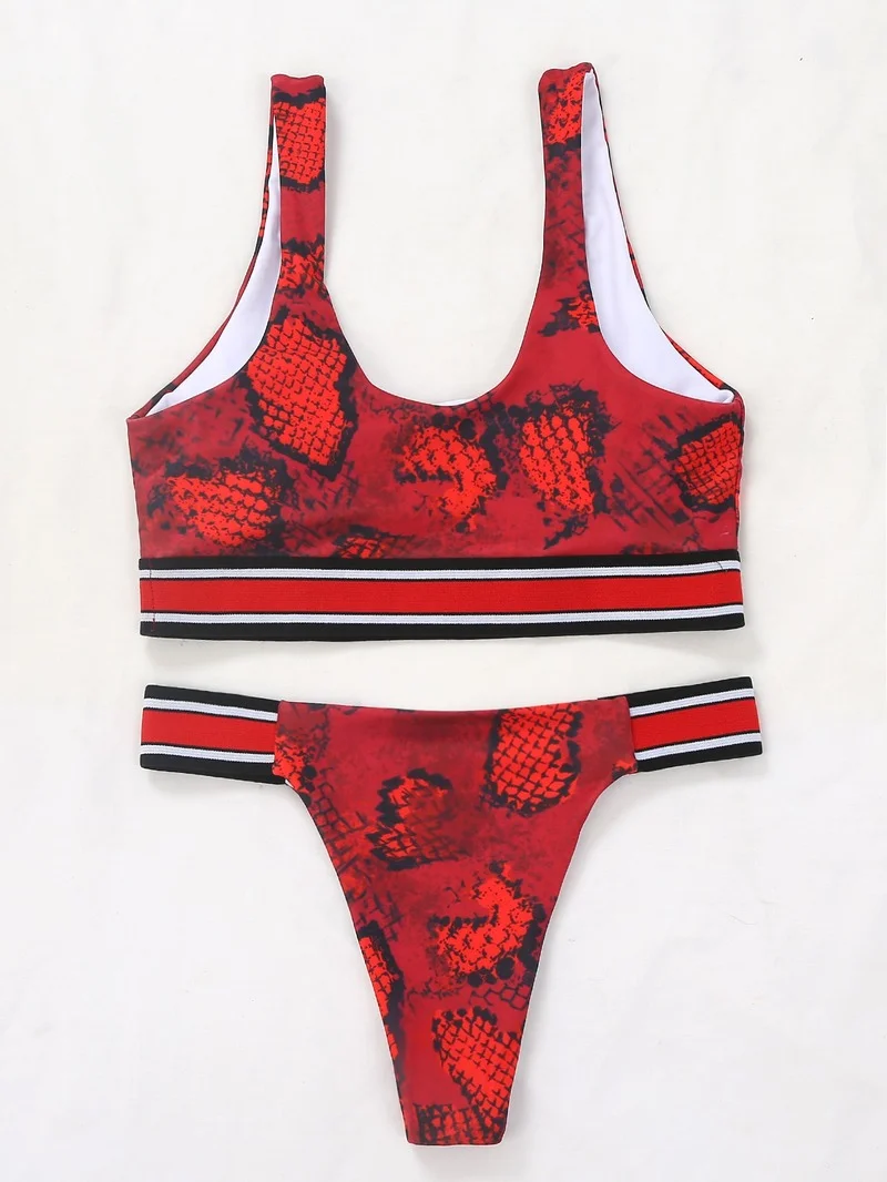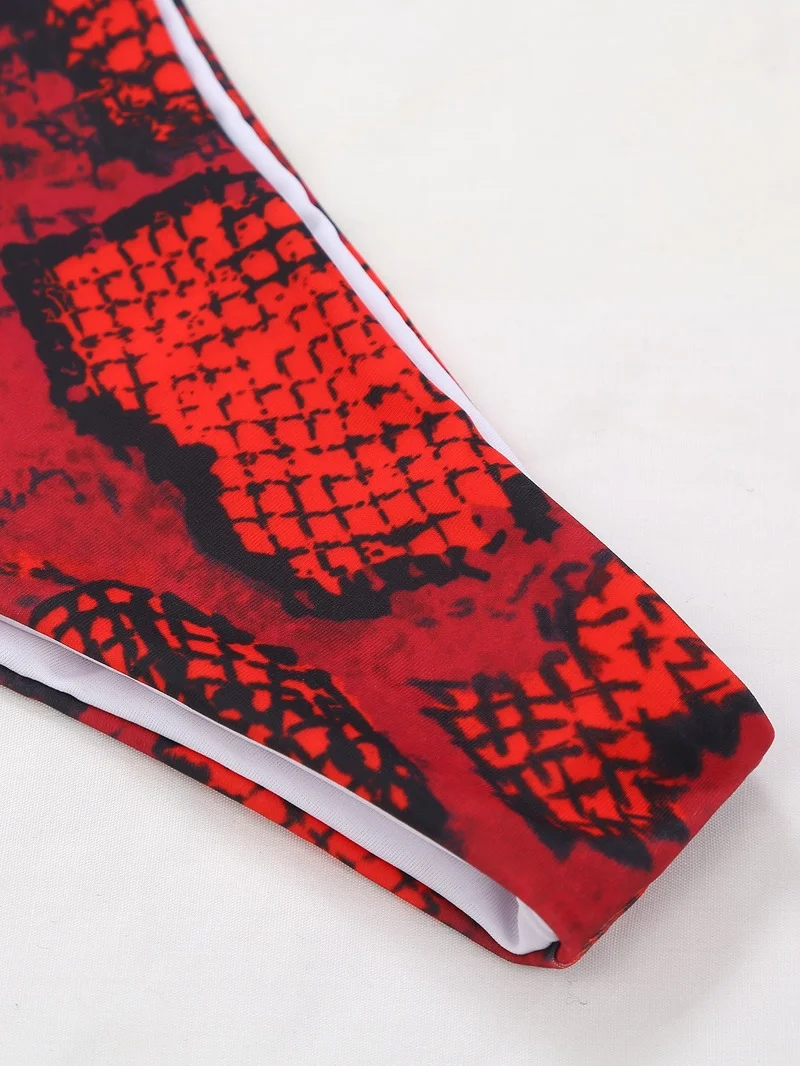 Купальник женский с принтом змеи, микро бикини в стиле пэчворк, купальник с заниженной талией, размера плюс купальный костюм, красная пляжная одежда, 2021