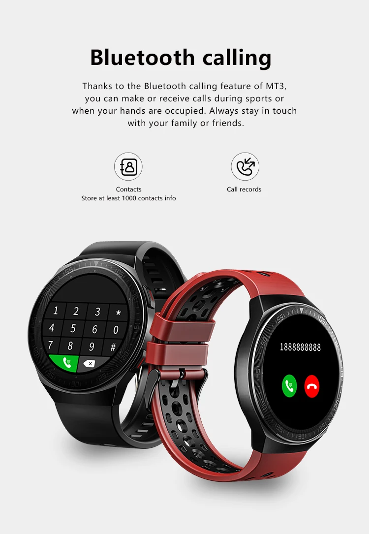 Смарт-часы EOENKK MT3 мужские, с сенсорным экраном, водонепроницаемые, 8 Гб памяти, Bluetooth, функция записи