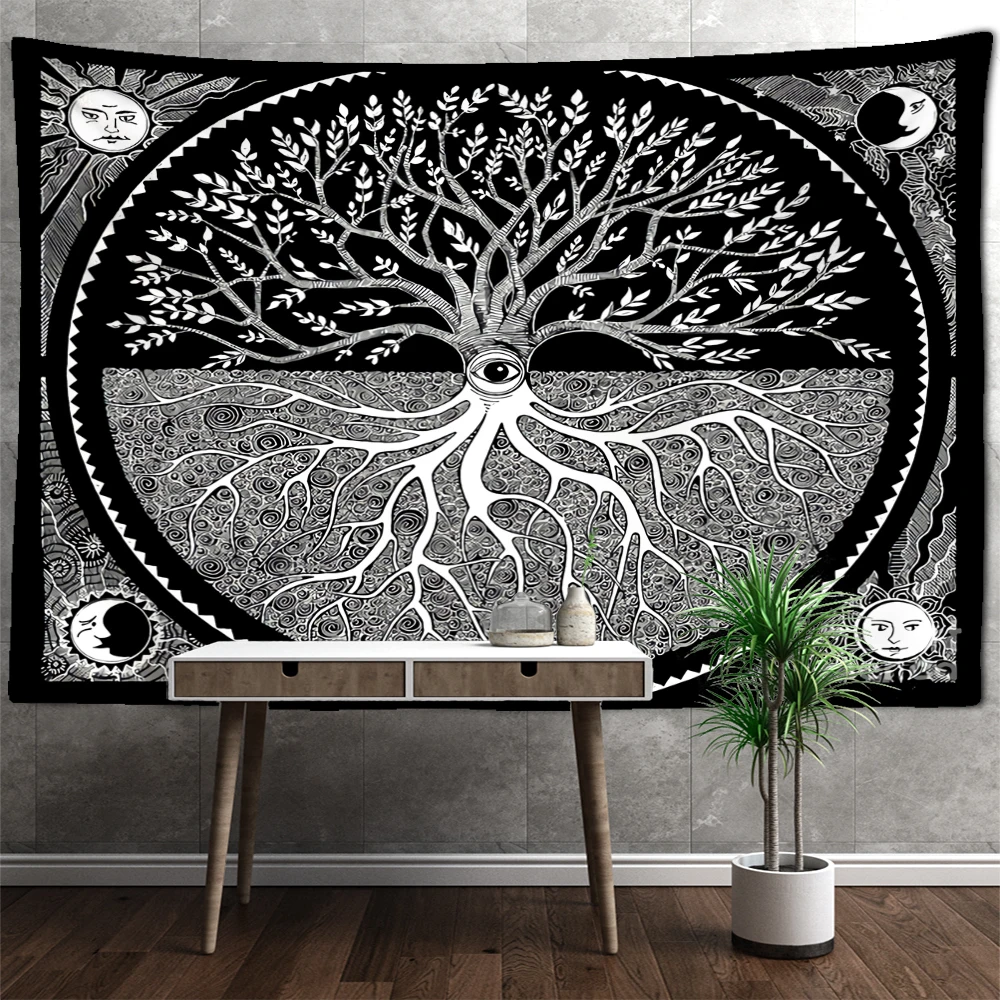 Настенный Гобелен викингов, Ворон, волшебное дерево, таинственное Психоделическое искусство для медитации, гостиной, искусство, домашний декор