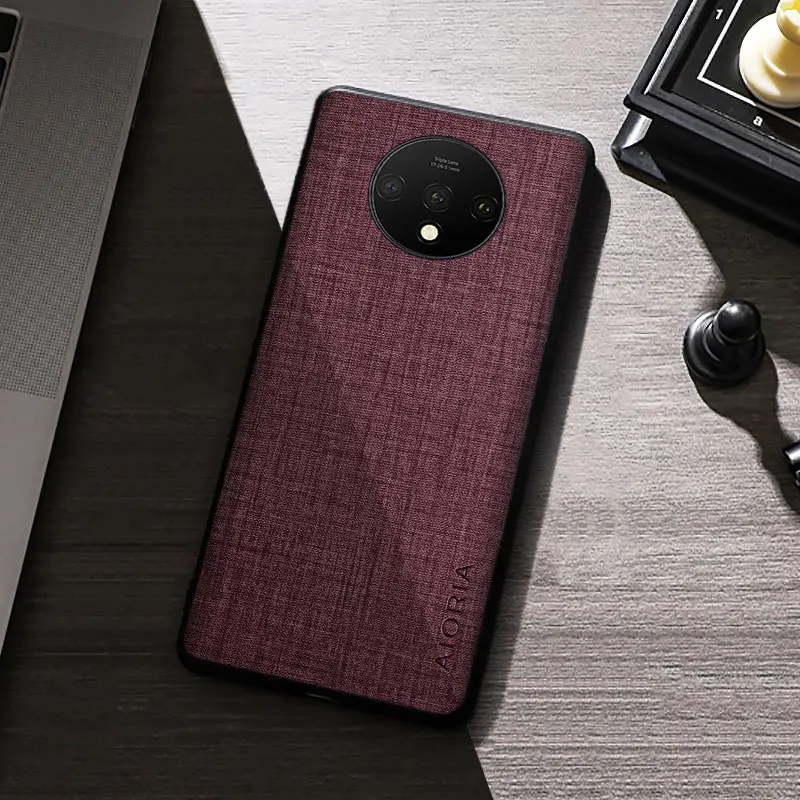 Чехол для Oneplus 7T, тканевая текстура, четыре угла, взрывозащищенный, защитный, Премиум текстиль, искусственная кожа, задняя крышка для oneplus 7t, чехол для телефона