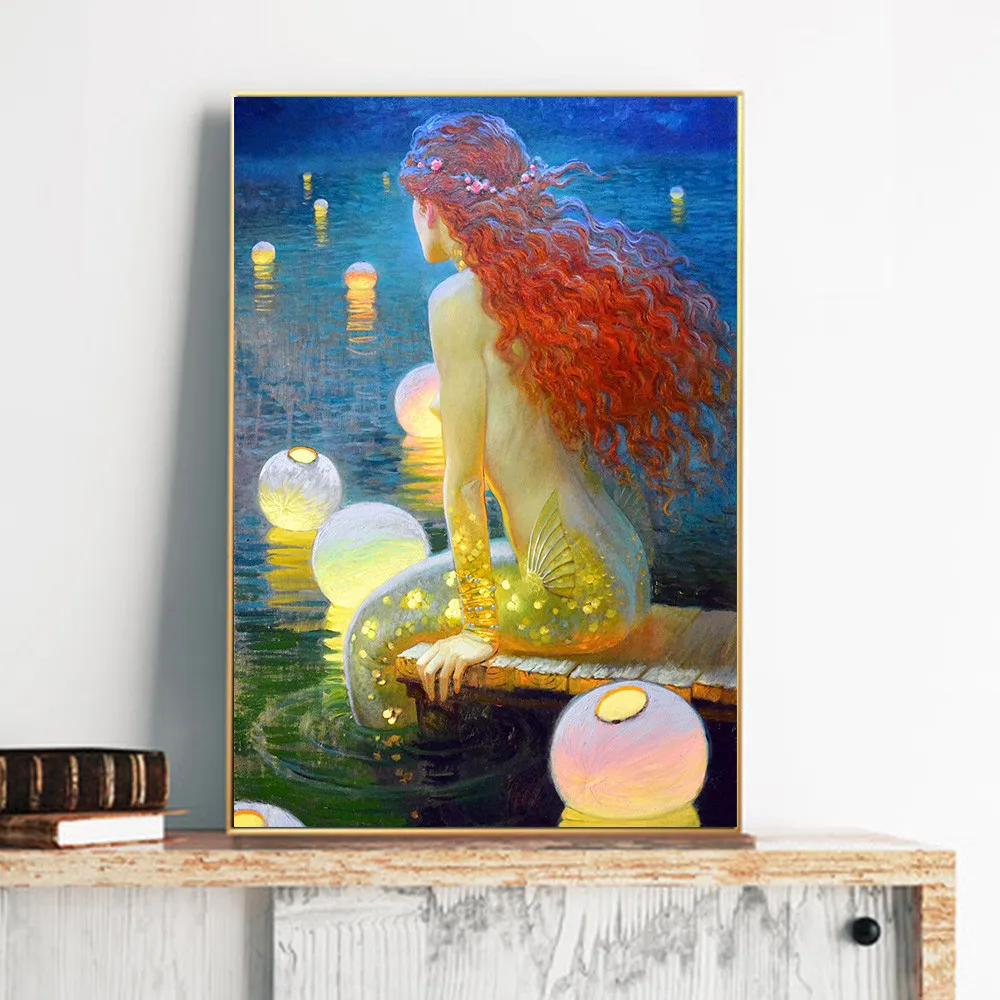 HUACAN камни в форме ромбаНабор для рисования с круглыми камнями и полотном картина Русалка Алмазная мозаика реки вышивка крестиком украшения дома Настенный декор современного искусства
