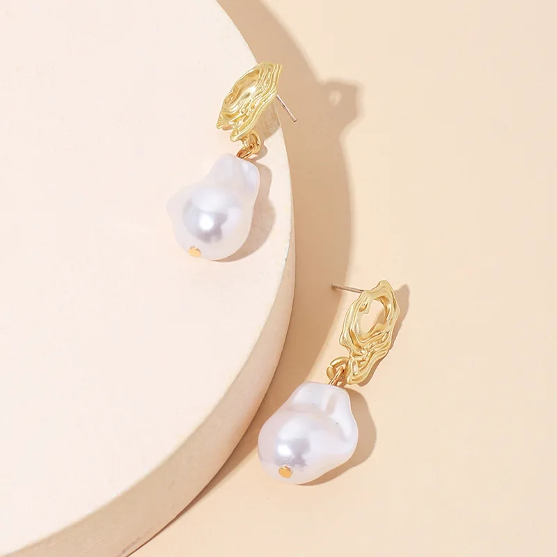 Модные барочная неправильная жемчужные серьги для женщин Золотой Цвет личность геометрической формы трендовые длинные серьги для женщин ювелирные изделия