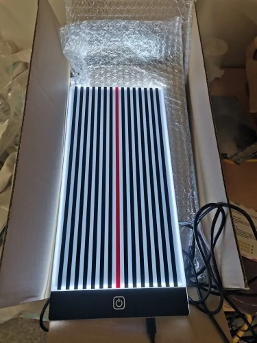 Еще не проверено для распаковки, но линии не кажутся супер яркими. Несколько возможных уровней света после неоднократного нажатия кнопки включения/выключения. Питание через USB-шнур, на аккумуляторной батарее. Крепление присоски на корпусе и наклейка на светодиодную линию. По цене, я посмотрю, подходит ли он для моего использования амадорного распаковки.