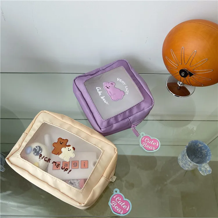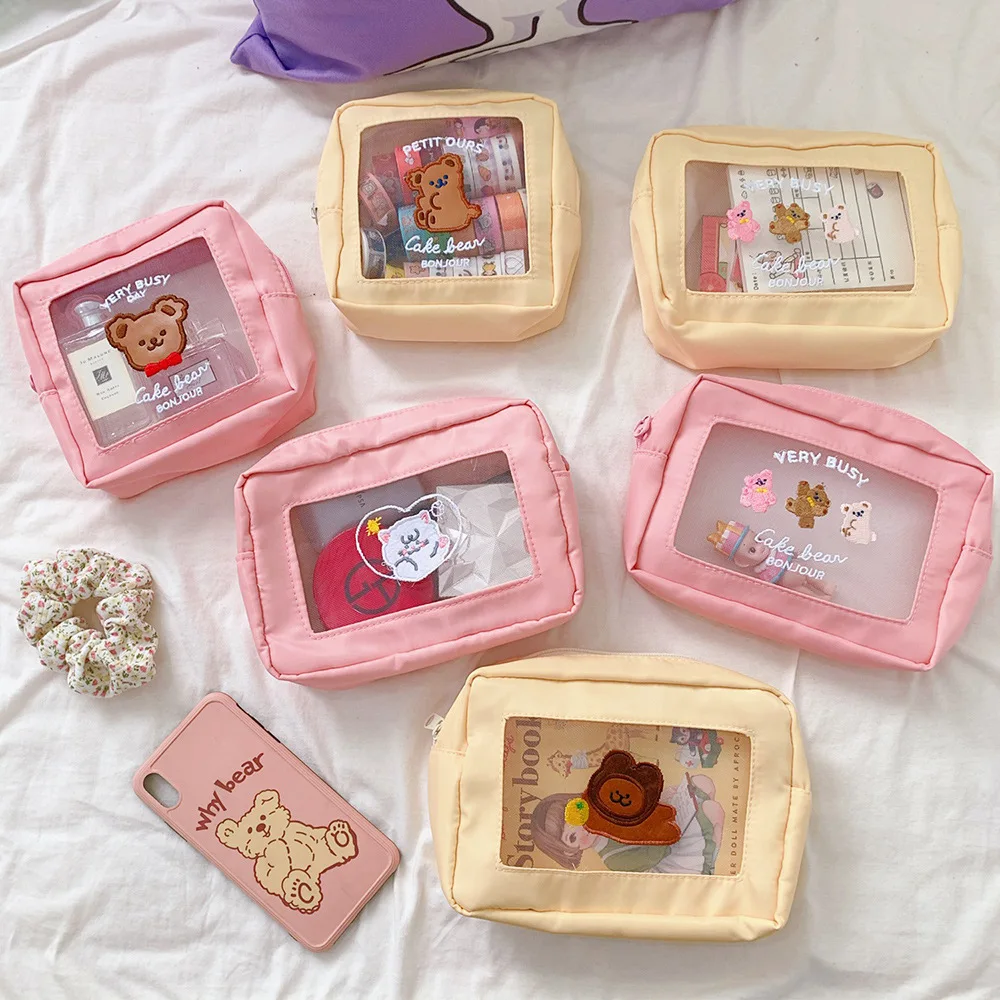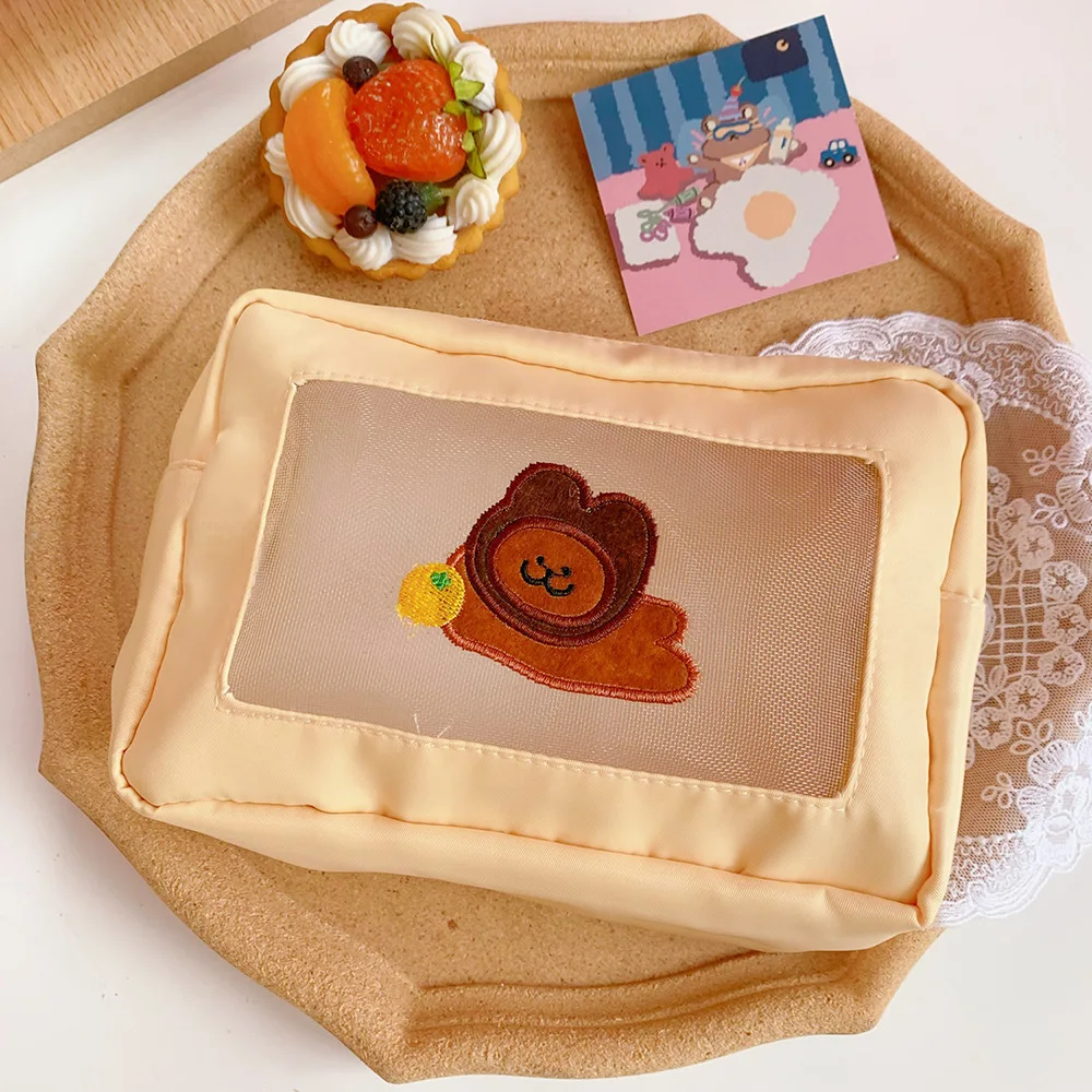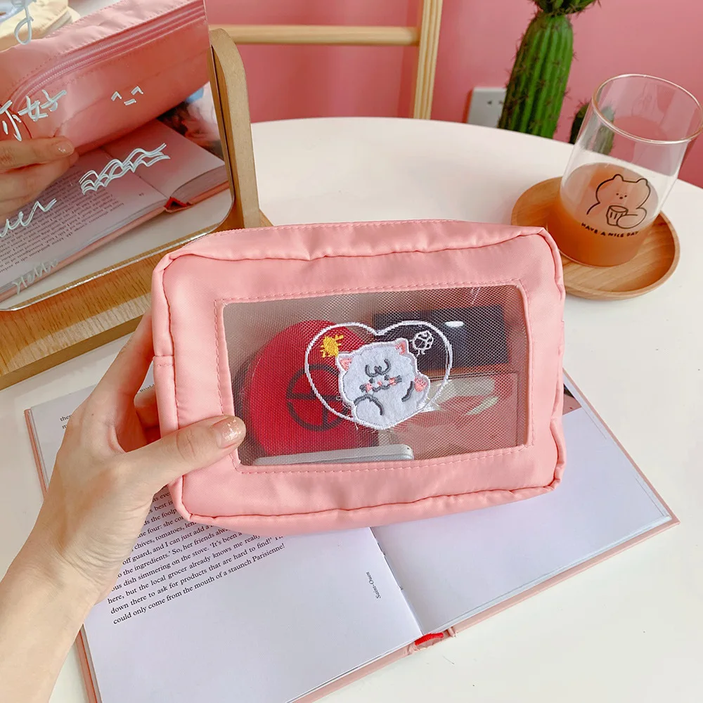 Водонепроницаемая большая сетчатая косметичка для женщин, портативный ins wind мультяшный чехол большой вместимости для карандашей и девушек, сумка для хранения, сумка для туалета