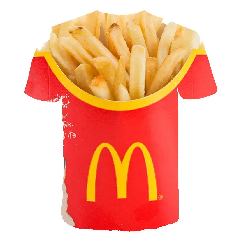 Футболка мужская в стиле хип-хоп, свободная тенниска с объемным принтом гамбургера, картошки фри, майка оверсайз, лето 2021