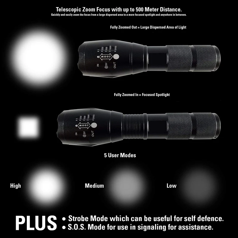 Это высокое качество Водонепроницаемый 14000лм светодиодный фонарик/фонарь с диммером, Регулируя телескопическую головку, Вы можете получить точечный луч и луч потока Как вам нужно. Идеально подходит для каверов, лесников, охотников, рыбаков и т. Д.?