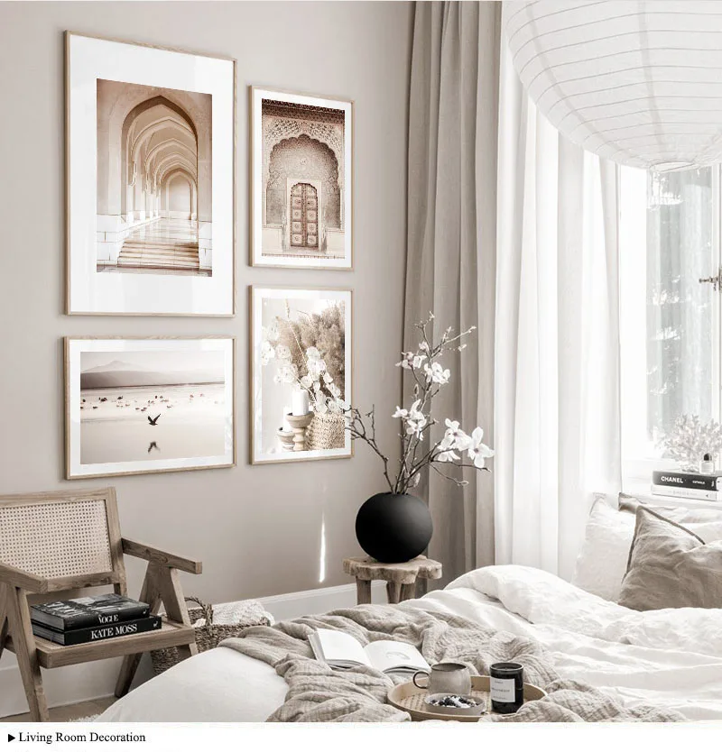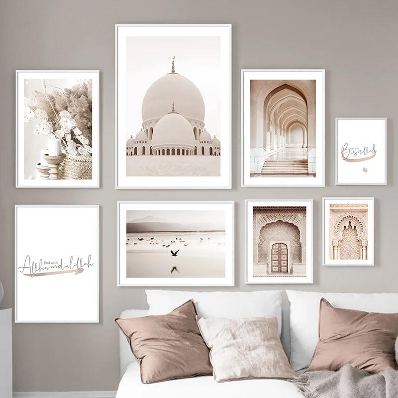 Мечети с изображением старинной двери исламский художественный холст для живописи Bismillah Аллах Арабский стиль каллиграфии плакат бежевого цвета с пейзажным принтом мусульманских изображение