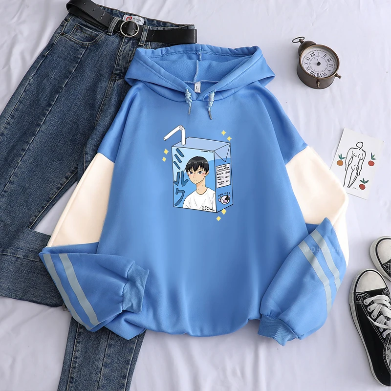 Худи Haikyuu с рисунком Tobio Kageyama в стиле пэчворк, японская модель, графика для подростков, молочные принты, Повседневный пуловер унисекс, свитшоты