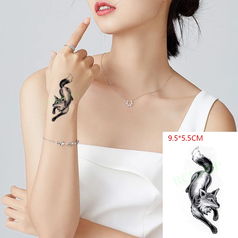 Водостойкая Временная тату-наклейка, лиса, дикий волк, животное, свирепый, боди-арт, флэш-тату, искусственная татуировка для женщин и мужчин