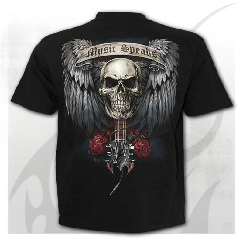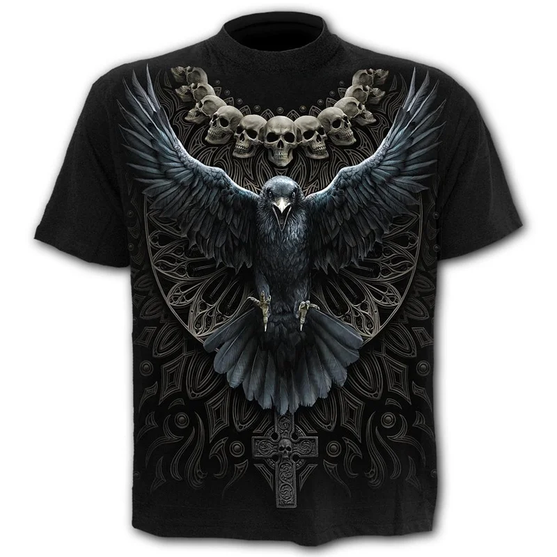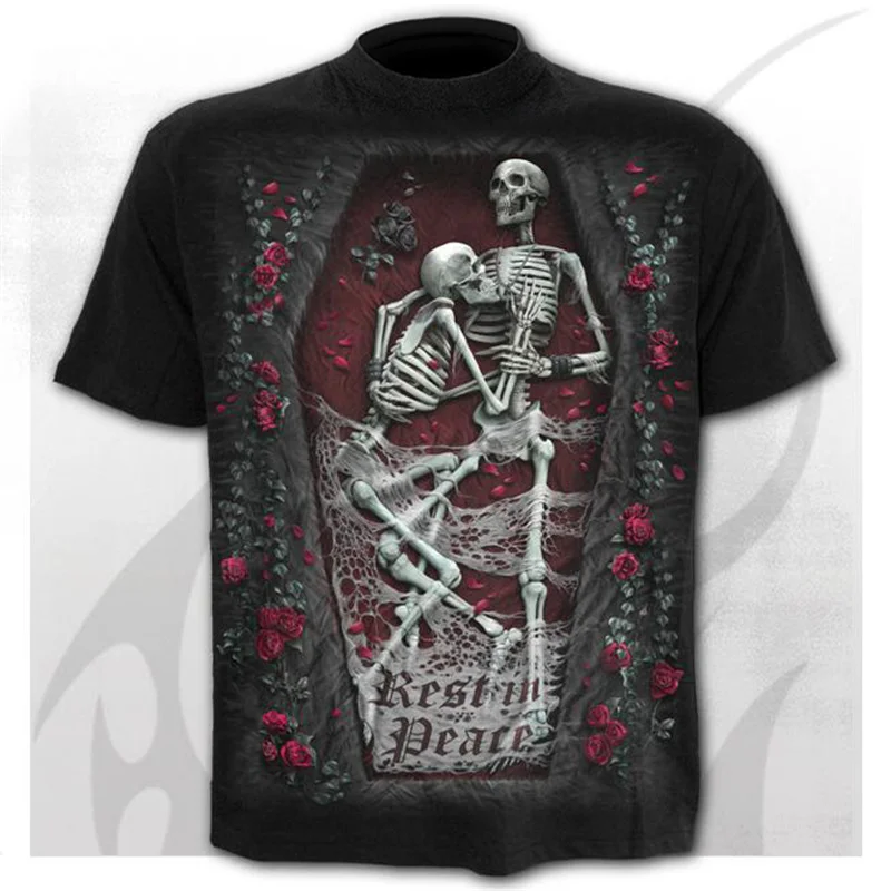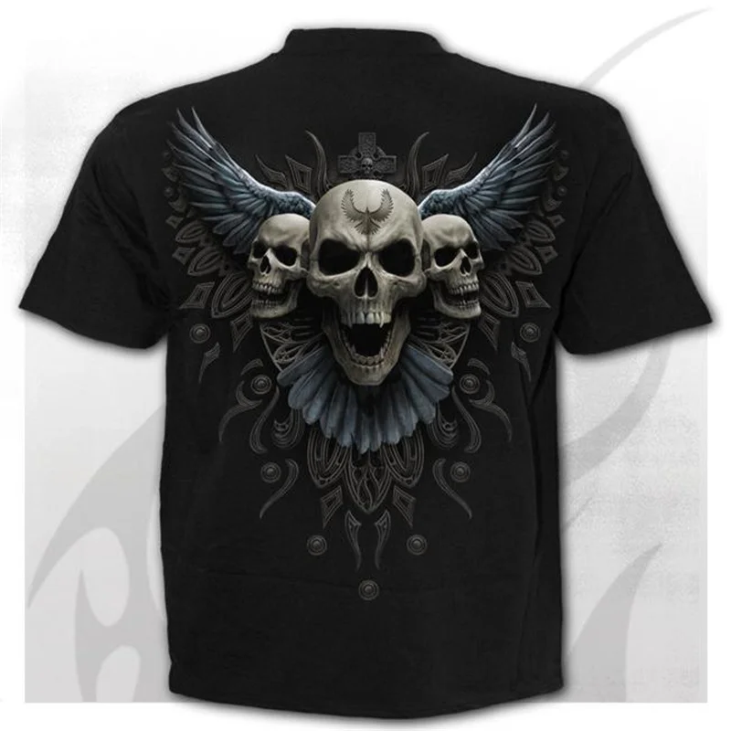 Жутким черепом Футболка мужская 3d в стиле панк-рок, рубашка в готи...